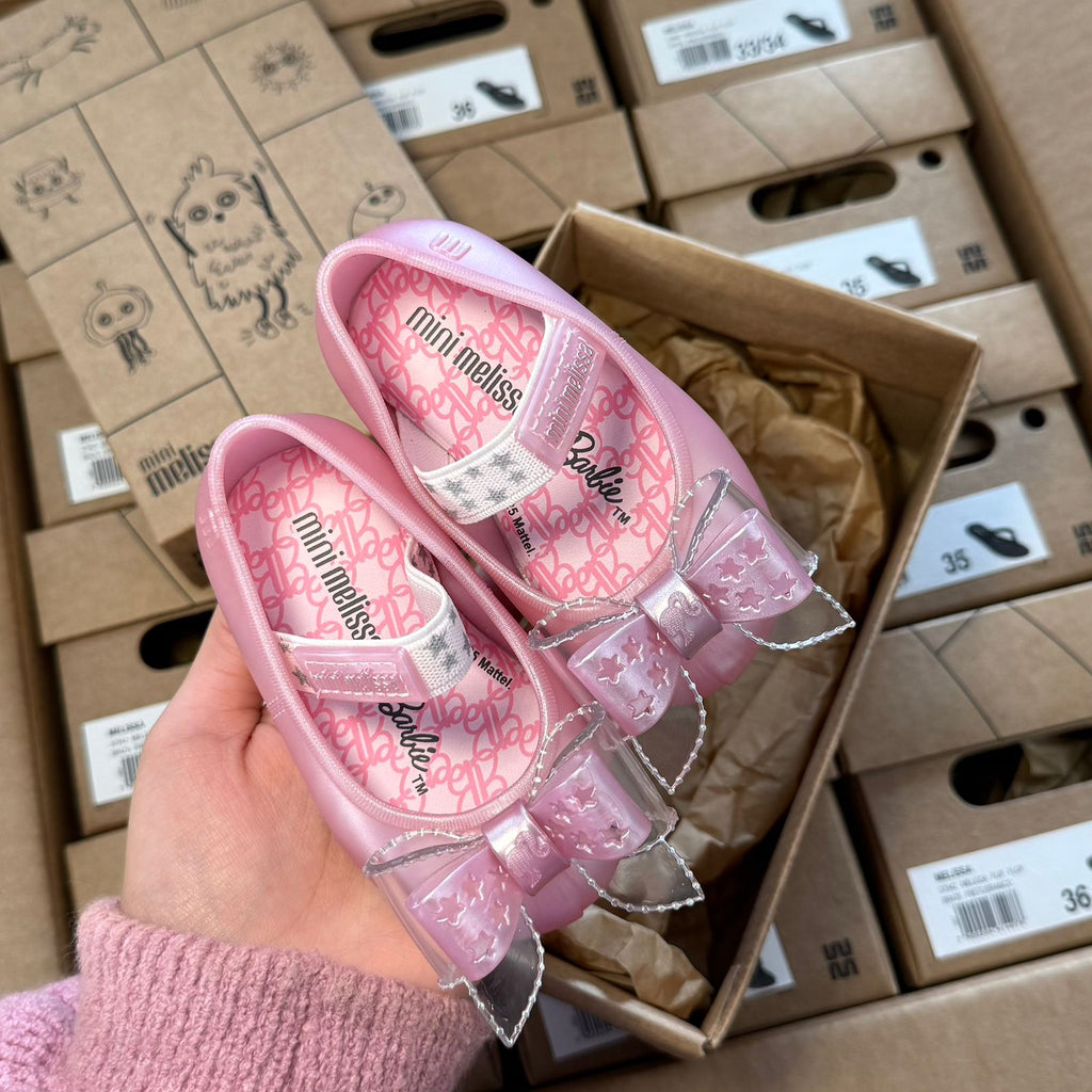 A Mini Melissa Sophie + Barbie Baby é o encontro perfeito entre delicadeza, brilho e imaginação. Inspirada no universo mágico da Barbie e na tendência balletcore, essa versão traz um visual encantador que mistura transparências suaves e acabamento brilhante, resultando em uma estética leve, feminina e cheia de personalidade. O detalhe da estrela no elástico adiciona um toque especial ao design, celebrando o encanto e a fantasia do mundo da Barbie. Feita para as pequenas que amam moda e diversão, é o modelo ideal para transformar cada momento.