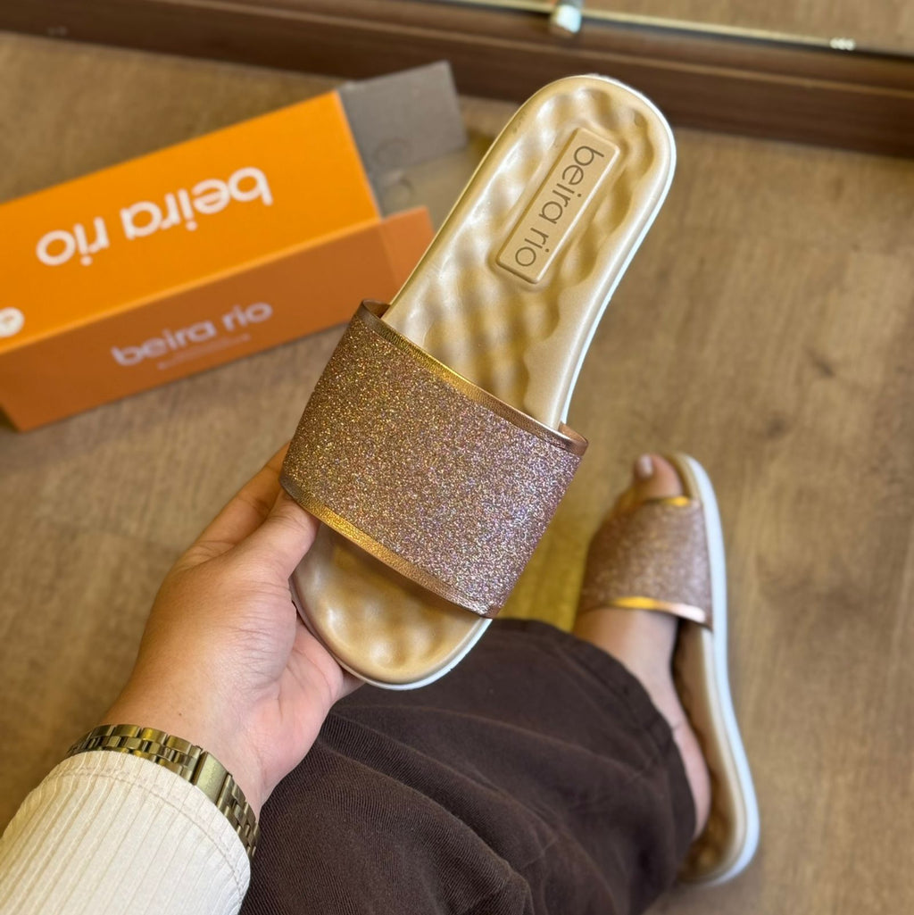 A Sandália Beira Rio Céu Estrelado 8360.353.26508 traz brilho e conforto em um só modelo. Com cabedal em glitter rosé e acabamento delicado, ela ilumina o visual sem perder a praticidade. O solado anatômico perolado garante maciez e bem-estar, sendo perfeita para compor looks casuais ou para dar um toque glam em produções mais simples.