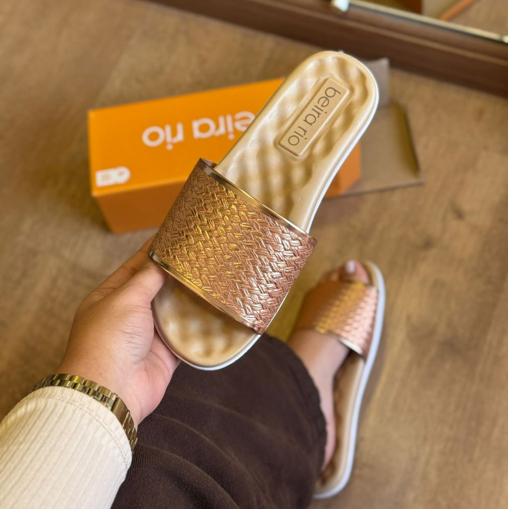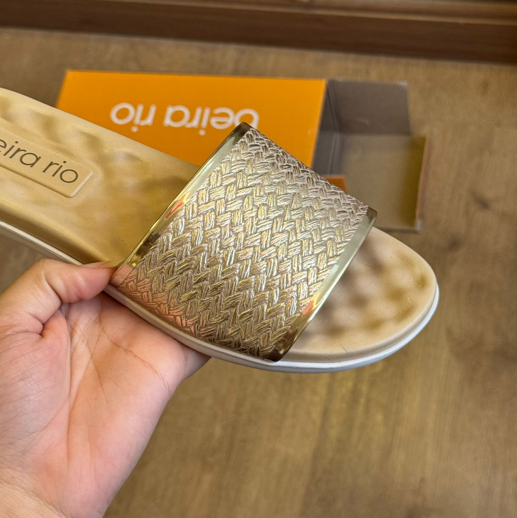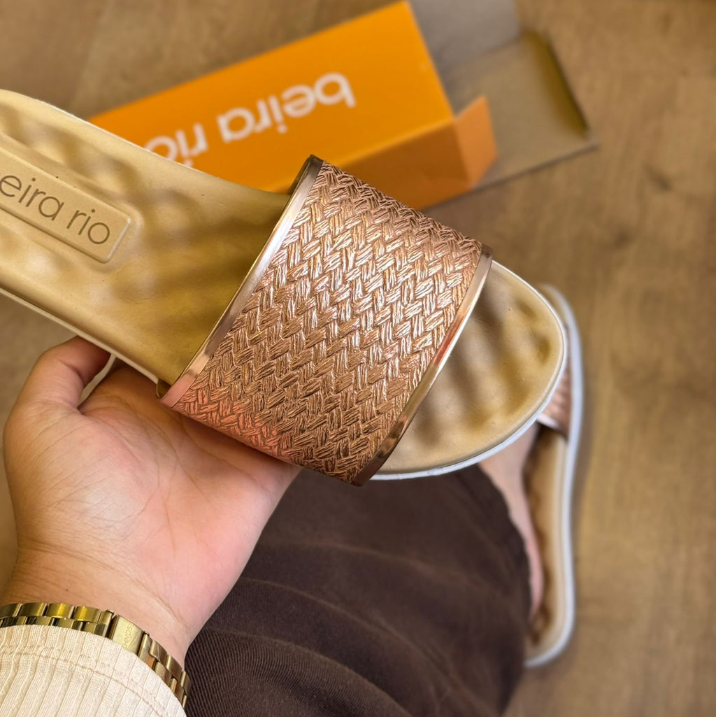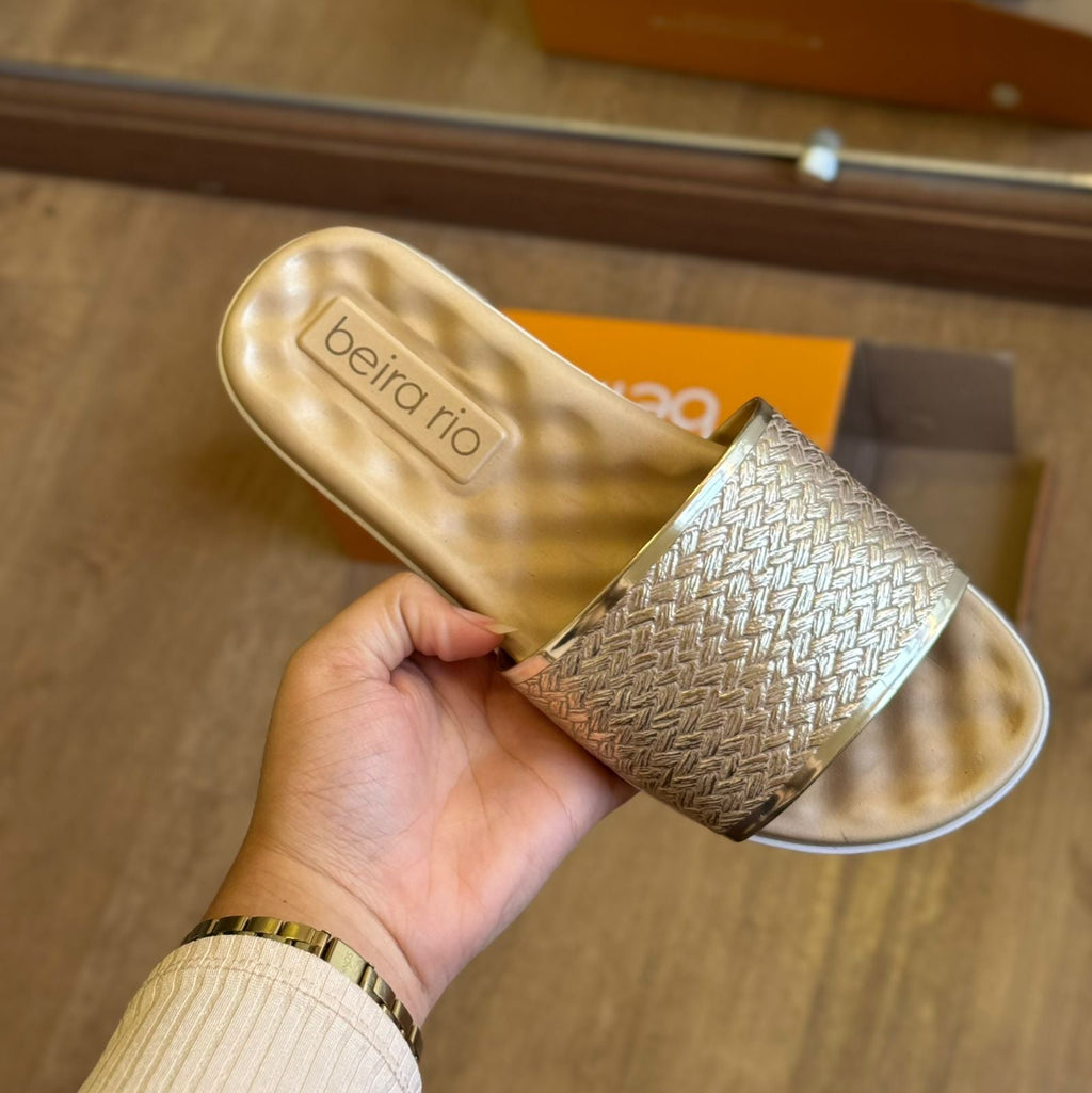 A Sandália Beira Rio Oca 8360.353.30445 combina conforto e praticidade em um design moderno. Feita em material sintético preto com textura trançada no cabedal, ela possui detalhes metalizados prateados que dão um toque de sofisticação ao visual. O solado anatômico garante bem-estar para o dia a dia, tornando-a ideal para compor looks casuais com estilo e leveza.