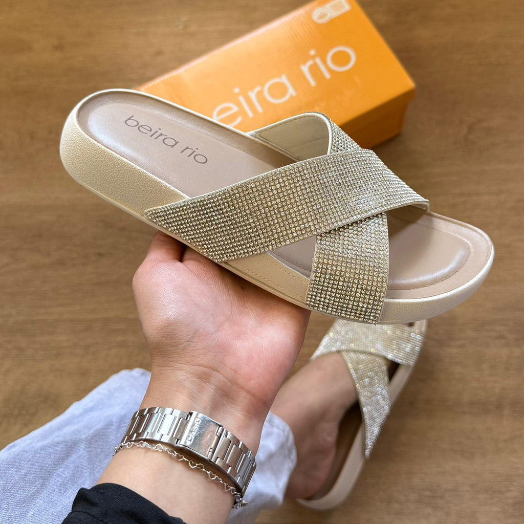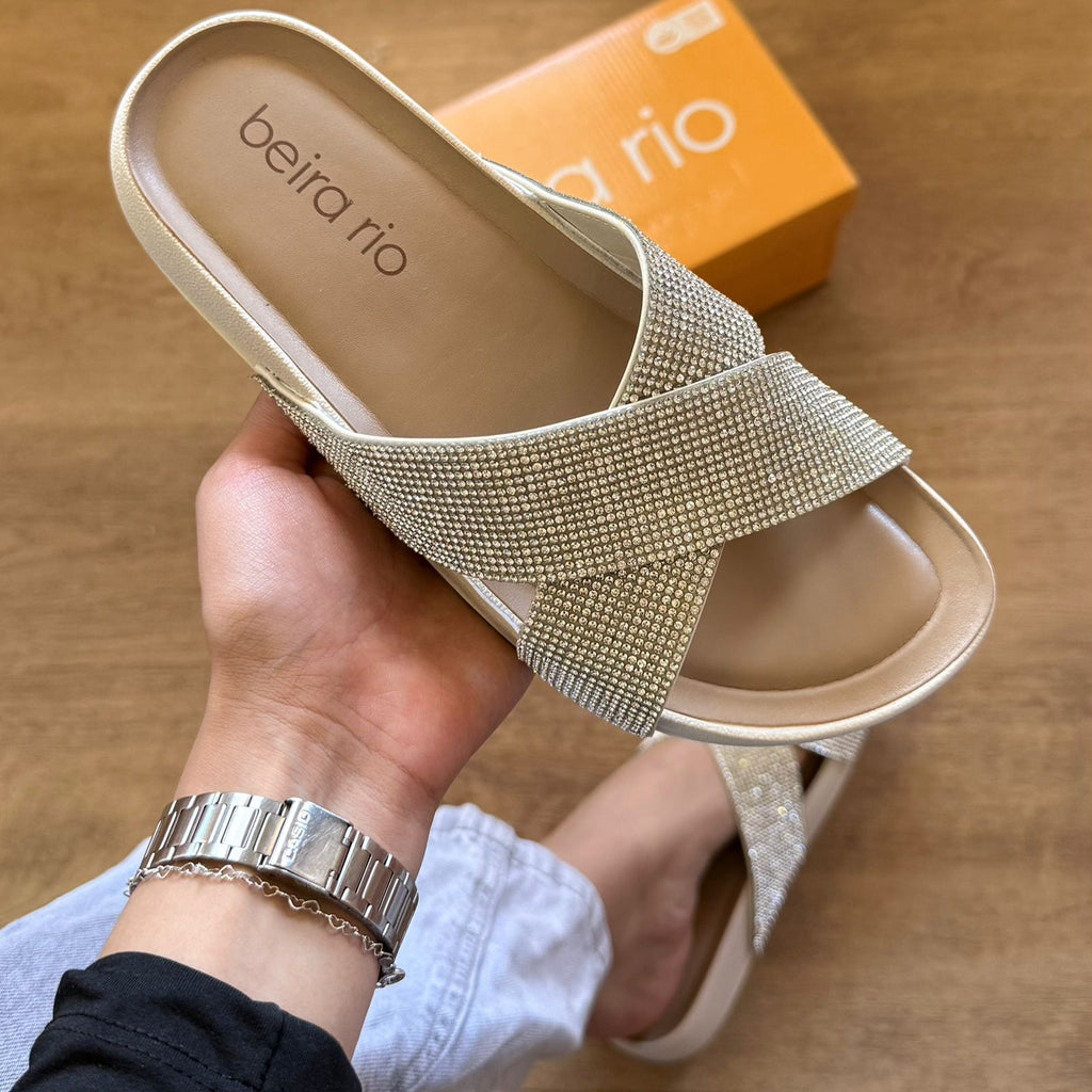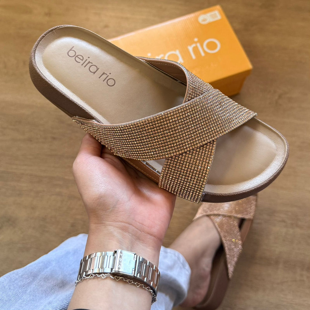 A Sandália Beira Rio Rasteira com Tiras Cruzadas Brilhosas 8542.104 oferece conforto e elegância em um design sofisticado. Suas tiras cruzadas garantem melhor ajuste e segurança aos pés, enquanto o acabamento brilhoso acrescenta um toque de charme discreto. Ideal para uso diário ou ocasiões casuais, proporciona leveza e praticidade sem abrir mão do estilo.