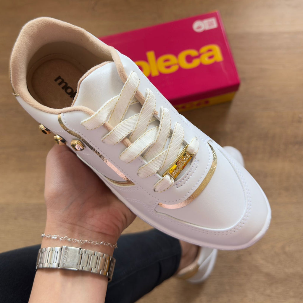 Tênis Moleca Quadrado Dourado 5827.105 combina estilo contemporâneo com conforto duradouro. Seu design quadrado diferenciado e acabamento dourado sofisticado criam um visual marcante para o dia a dia. Confeccionado com materiais de qualidade, oferece suporte adequado aos pés e resistência prolongada. Ideal para quem busca um calçado versátil que une tendência fashion com funcionalidade, elevando qualquer look com elegância discreta.