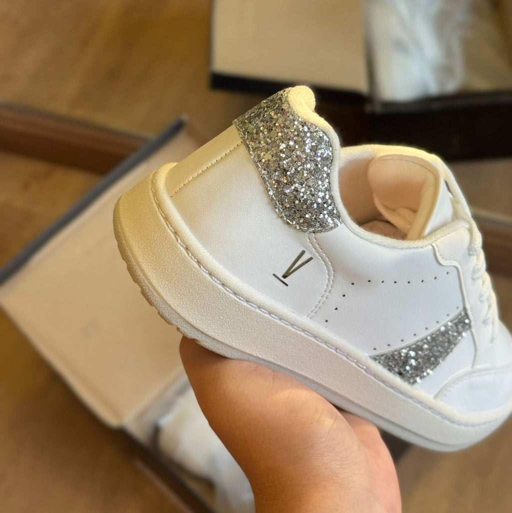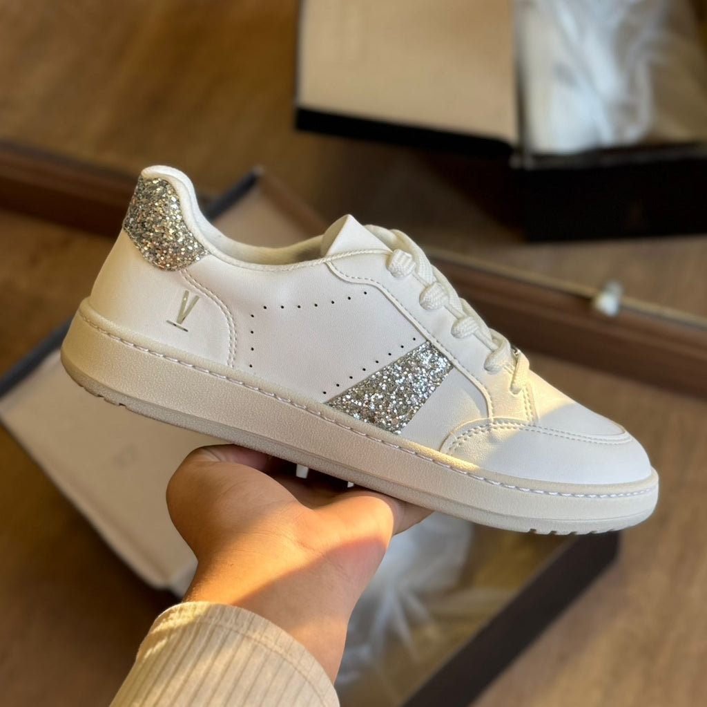 O Tênis Vizzano Calcanhar de Brilho 1466.101 combina o estilo casual com um toque sofisticado. Confeccionado em material sintético de alta qualidade, ele apresenta detalhes em glitter no calcanhar e na lateral, garantindo um visual moderno e elegante. Seu solado branco contrastante oferece leveza e conforto, enquanto o design versátil permite combinações com diferentes looks, do dia a dia a produções mais despojadas.