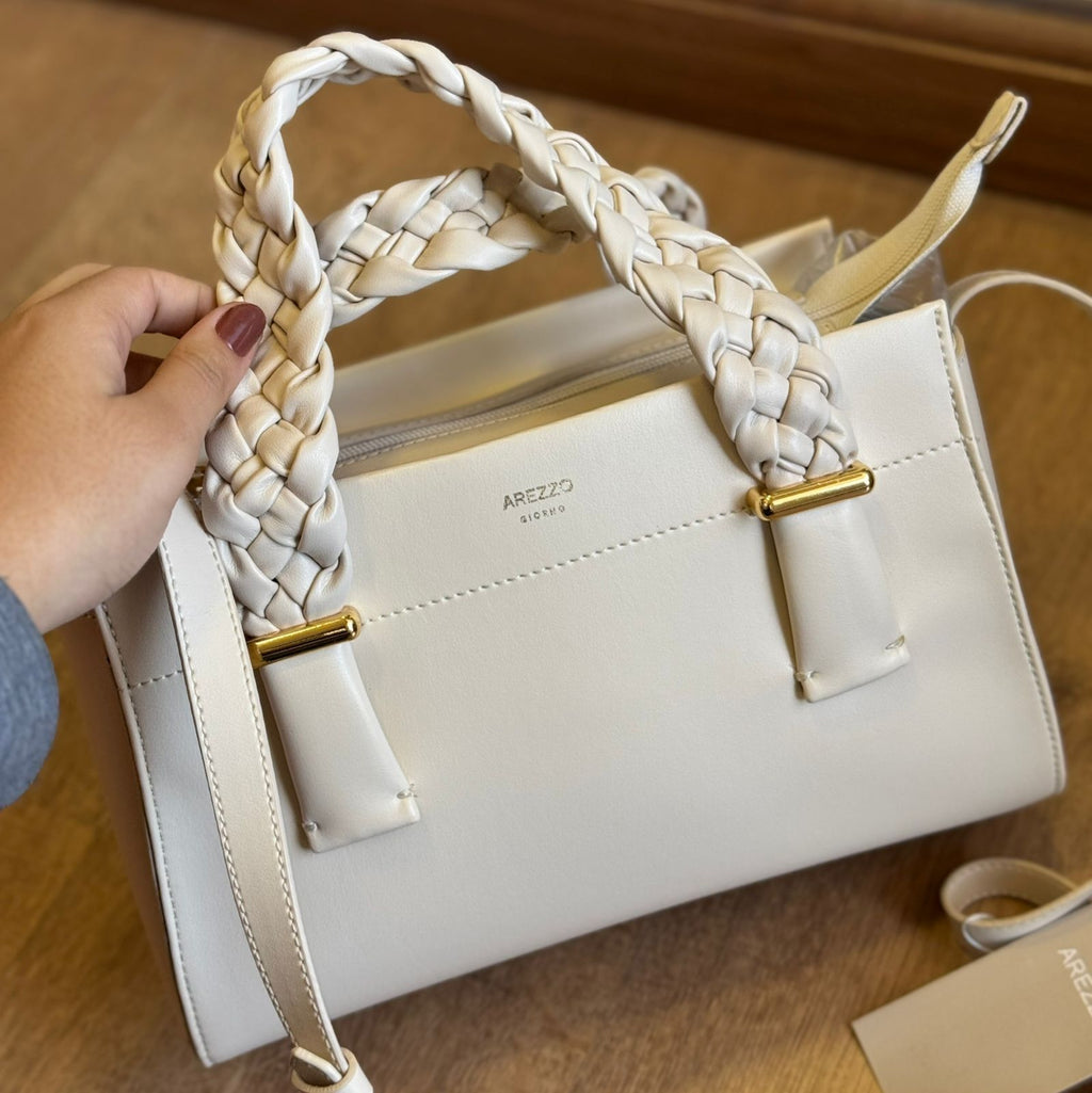 A Bolsa Arezzo Estruturada é a combinação perfeita de sofisticação e praticidade. Produzida em material de alta qualidade, apresenta design elegante com alças de mão trançadas, que trazem um toque artesanal e exclusivo ao modelo. Possui também alça tiracolo ajustável e removível, garantindo versatilidade para diferentes ocasiões. Seu interior espaçoso e fechamento seguro proporcionam funcionalidade no dia a dia sem abrir mão do estilo. Um acessório atemporal que eleva qualquer produção.