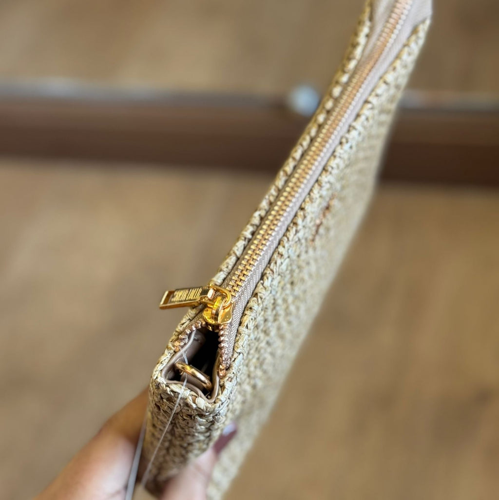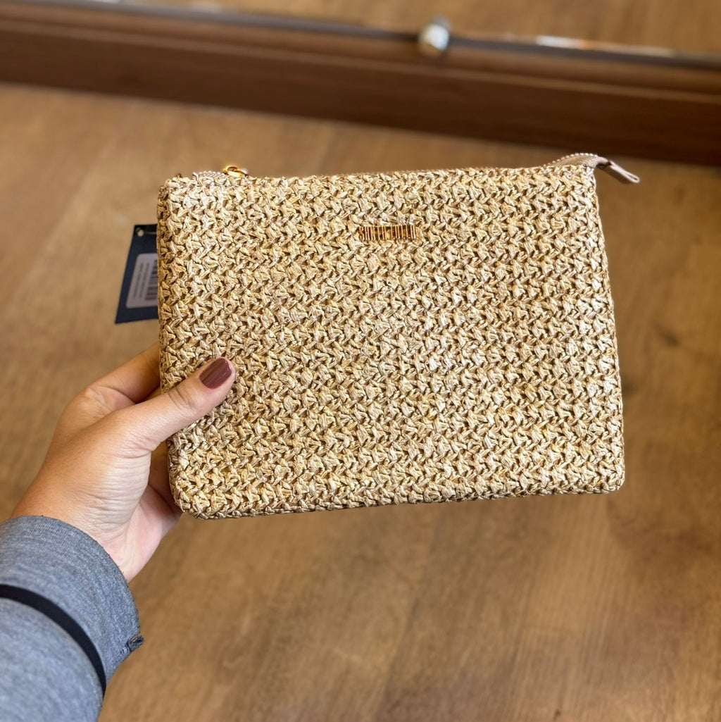 Bolsa confeccionada em material natural tramado, que confere textura única e um visual sofisticado. Conta com alça transversal, combinando praticidade com um toque de estilo contemporâneo. Versátil e cheia de personalidade, é ideal para compor looks do dia a dia ou para ocasiões especiais.