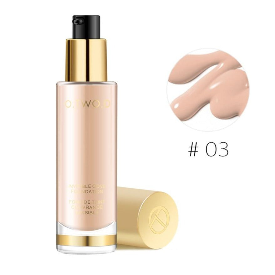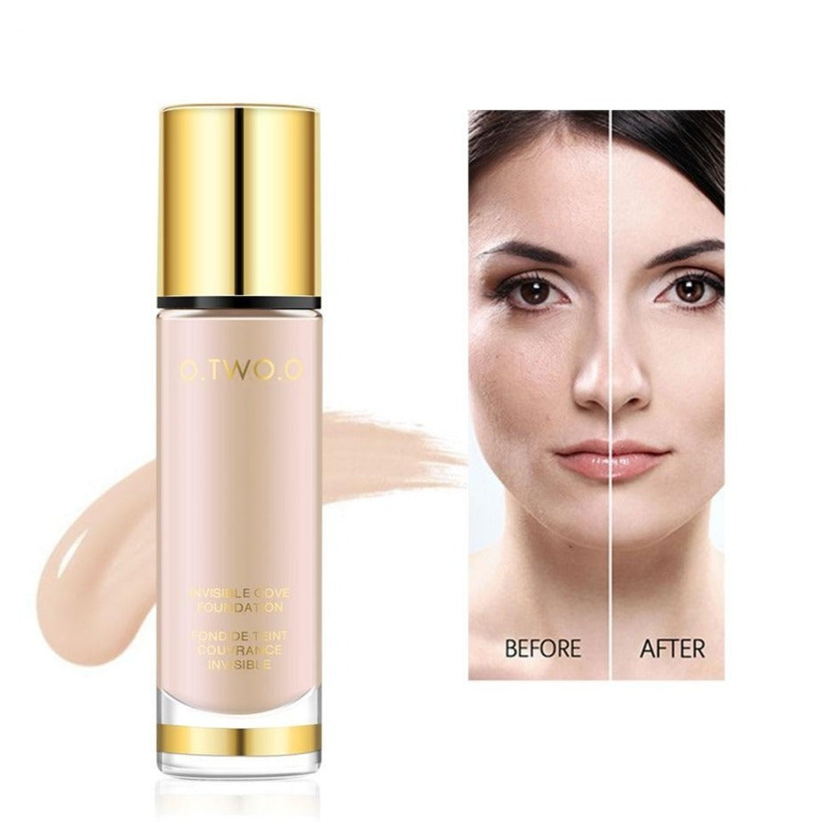(1) Base Facial Líquida O.TWO.O Alta Cobertura é livre de óleo e não escorre, com duração de horas, se manterá maquiada por todo o dia, tem poder corretivo, de alta cobertura, cobrindo  poros Não tem medo de alta temperatura, excelente efeito de controle de óleo, de manhã à noite, a maquiagem inferior é tão bonita como sempre!