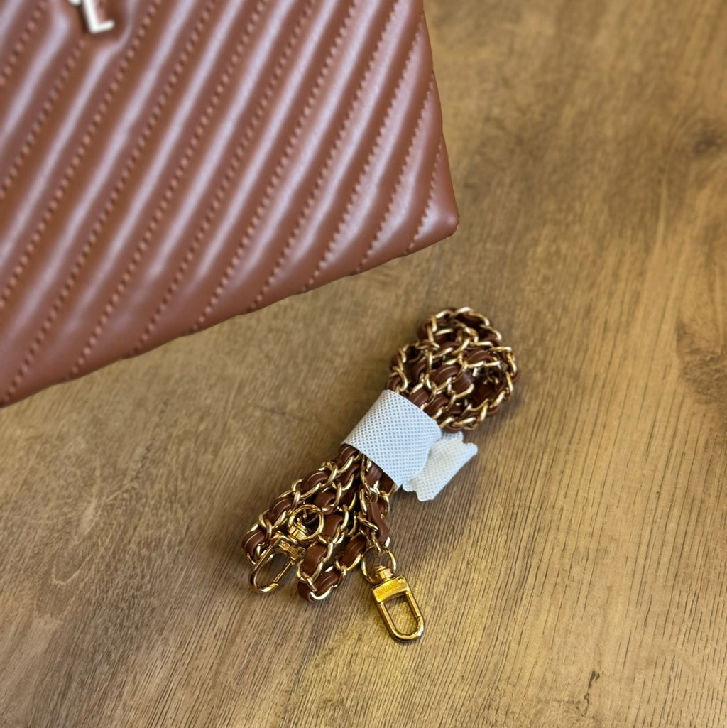 A Bolsa Carteira Santa Lolla Matelassê Bege 0470.547F é a peça que combina charme e funcionalidade no dia a dia. Com acabamento matelassê diagonal, traz um toque sofisticado e moderno, enquanto o logo metálico frontal garante autenticidade e estilo. Possui fechamento em zíper, tamanho prático e alça em corrente dourada, que permite usar tanto no ombro quanto na transversal. Um acessório versátil que transita facilmente entre looks casuais e produções mais elegantes.