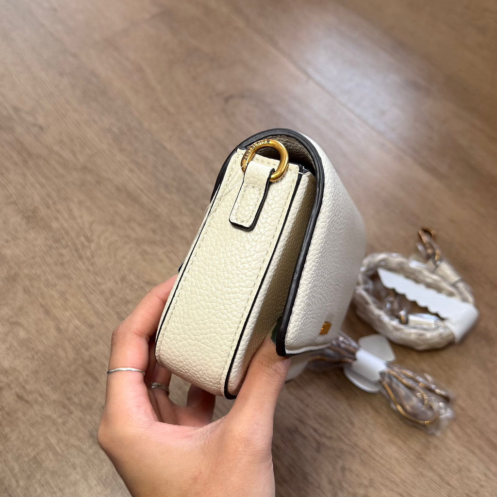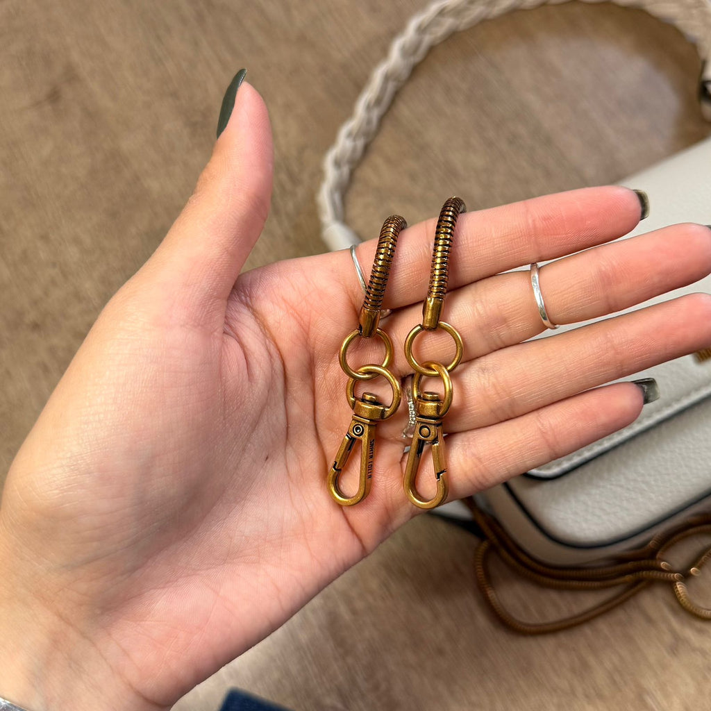 Bolsa confeccionada em material tecnológico com textura que imita pele de cobra, oferece um toque de luxo e versatilidade para várias ocasiões. Um dos destaques deste modelo é sua alça superior trançada, que confere um visual diferenciado e artesanal, proporcionando conforto e elegância no uso como bolsa de mão. Além disso, a bolsa possui uma alça fina dourada, que pode ser usada para carregá-la no ombro ou de forma transversal, oferecendo versatilidade no estilo. O logo discreto em metal dourado e as ferragens complementam o design sofisticado, tornando-a ideal para carregar itens essenciais com praticidade e requinte.