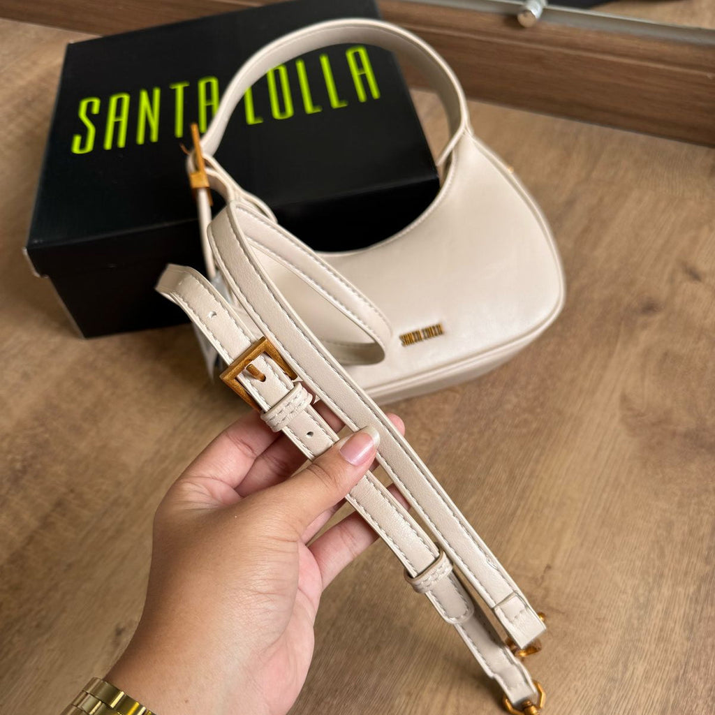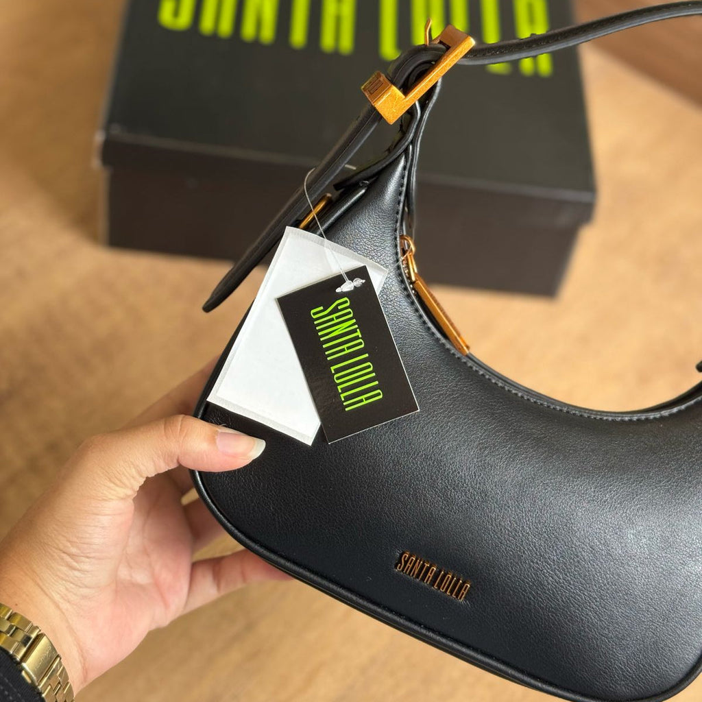Bolsa baguete pequena em formato meia lua com detalhes dourados, confeccionada em material soft, o modelo possui alça de ombro ajustável em fivela e alça transversal removível e ajustável. Compartimento interno forrado e com bolsos, fechamento superior em zíper. Essa bolsa é perfeita para quem busca um acessório versátil e estiloso para completar seu look.