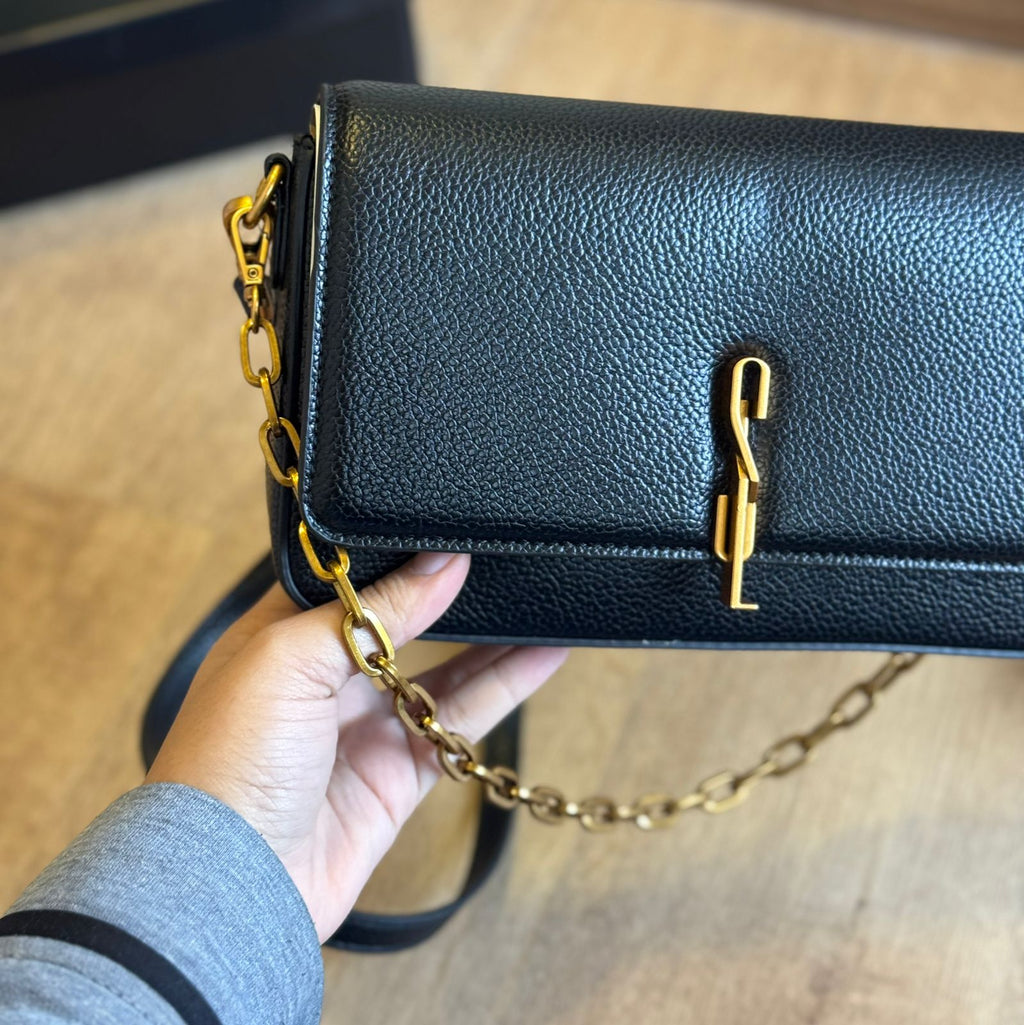 A Bolsa Santa Lolla Fecho Metálico SL 0470.4B65 é o acessório ideal para quem busca sofisticação e estilo em todos os detalhes. Com acabamento texturizado de alta qualidade, possui design estruturado e moderno, perfeito para compor produções elegantes. O destaque fica por conta do fecho frontal metálico com o logo da marca, que traz um toque de exclusividade. A alça em corrente com acabamento dourado complementa o visual com charme e versatilidade. Internamente, oferece espaço funcional para itens essenciais. Ideal para eventos, compromissos ou produções refinadas do dia a dia.