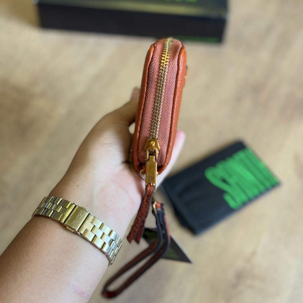 Carteira Confeccionada em couro floater, caracterizado pela superfície granulada e macia, proporciona uma aparência elegante e moderna, além de ser resistente ao desgaste diário. Possui tamanho ideal para armazenar dinheiro, cartões, documentos, moedas e pequenos objetos pessoais, mantendo tudo bem organizado e acessível. Contém Alça de punho removível, garantindo praticidade e conforto no transporte, permitindo que a carteira seja levada de forma segura