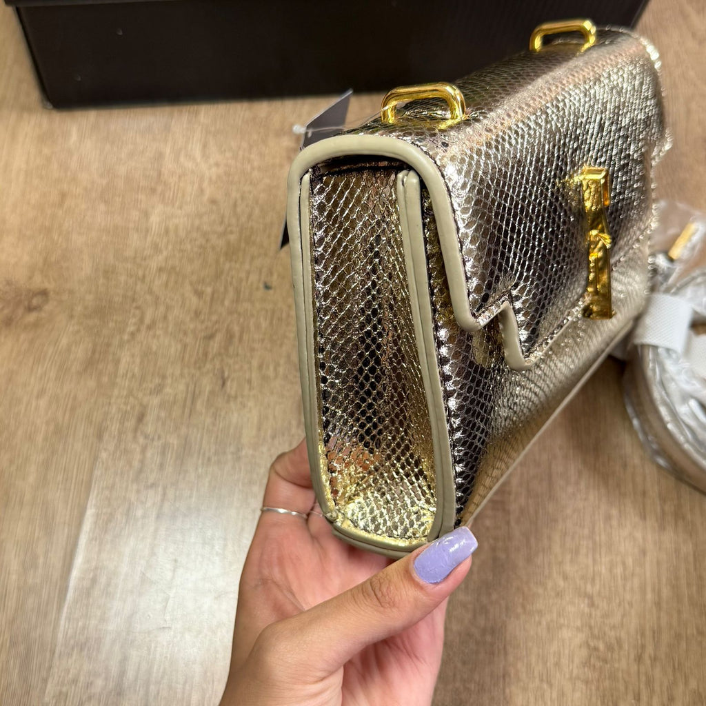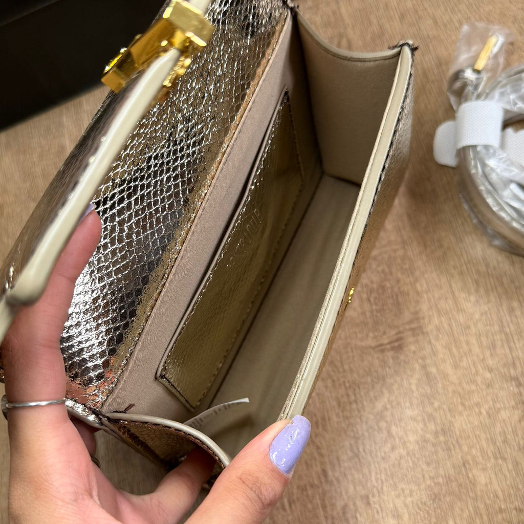 Bolsa pequena confeccionada em material tecnológico soft, modelo em formato quadrado possui alça transversal ajustável, compartimento interno ideal para armazenar itens essenciais, logo frontal SL metalizado e fechamento em imã.