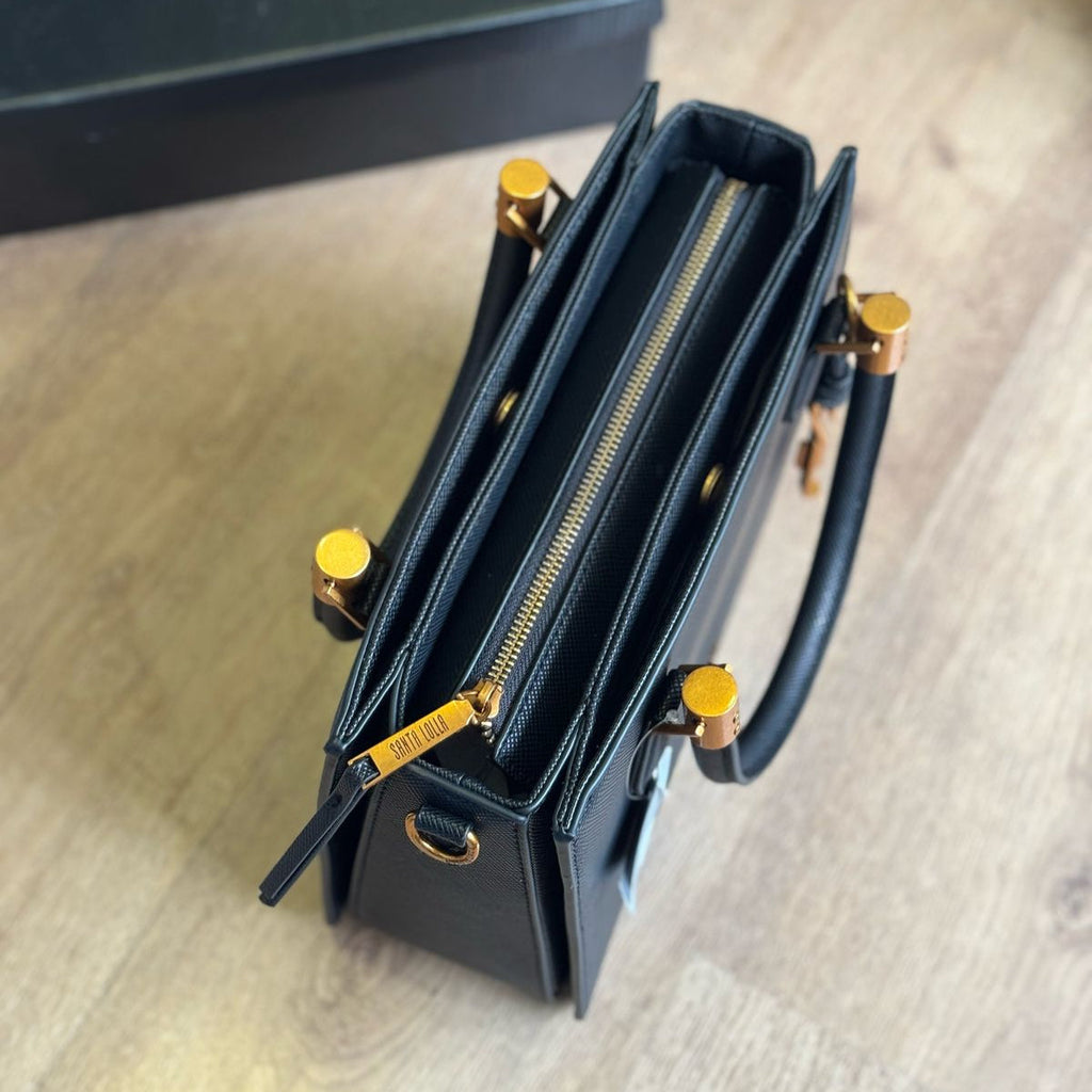 Bolsa confeccionada em material tecnológico risco, que oferece uma textura única, com um padrão sutil que adiciona sofisticação ao design. Ela possui um compartimento interno espaçoso, com vários bolsos organizadores, garantindo praticidade e facilidade no armazenamento de seus itens pessoais. O fechamento é em zíper, proporcionando segurança e mantendo seus objetos protegidos. Ela conta com duas alças, oferecendo conforto e permitindo que seja carregada com facilidade de diferentes formas.