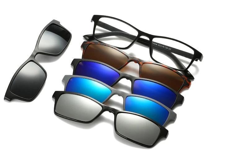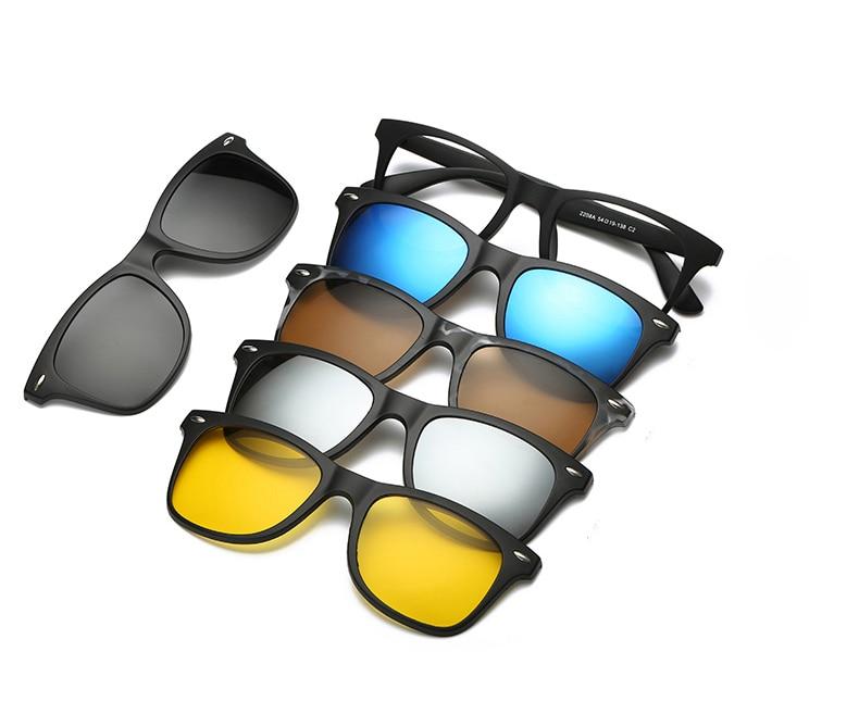 5 estilos diferentes de óculos de sol combinados em um, você pode mudar sua aparência com um par em segundos.