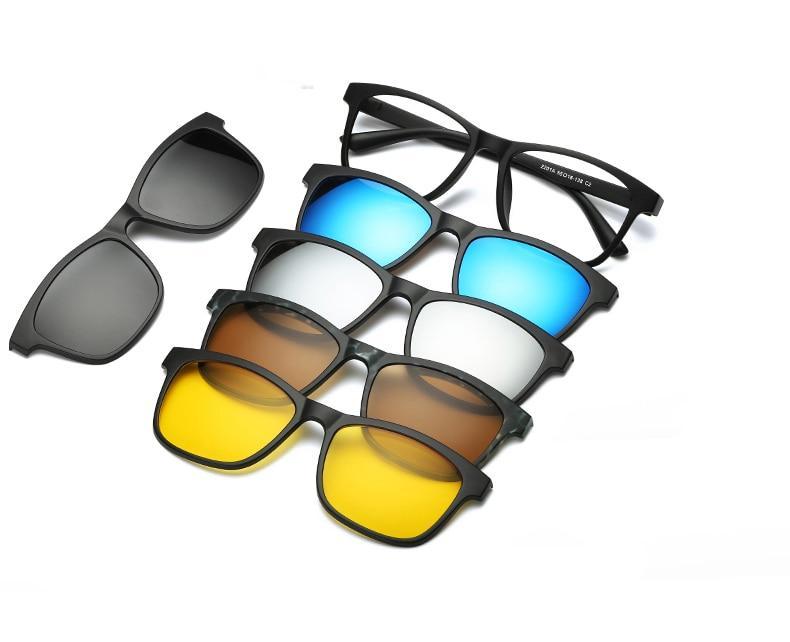 Chegou no Brasil o ÚNICO Óculos 5 lentes em 1, cinco pares de lentes magnéticas, coloridas e ajustável para sua melhor ocasião.