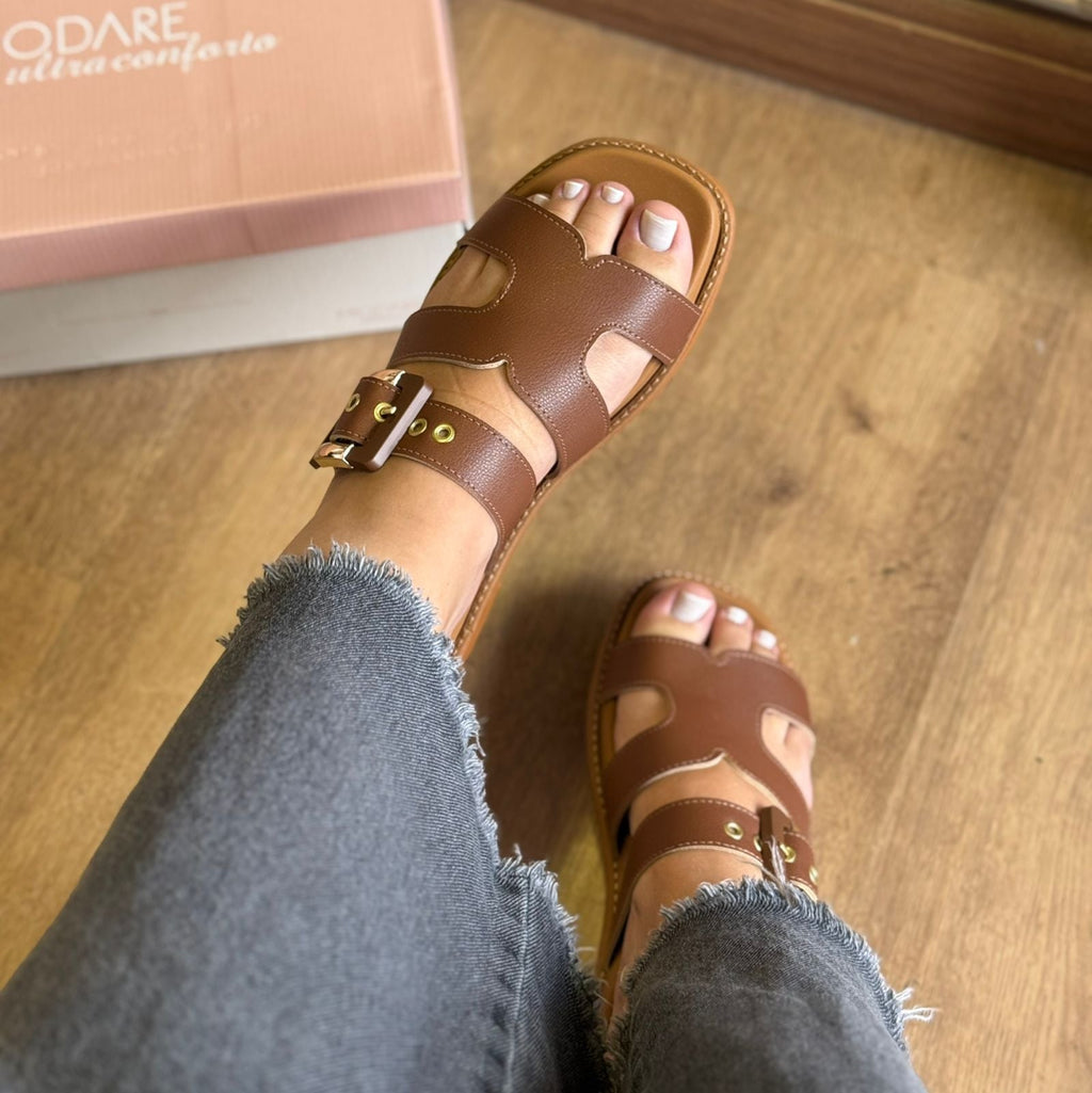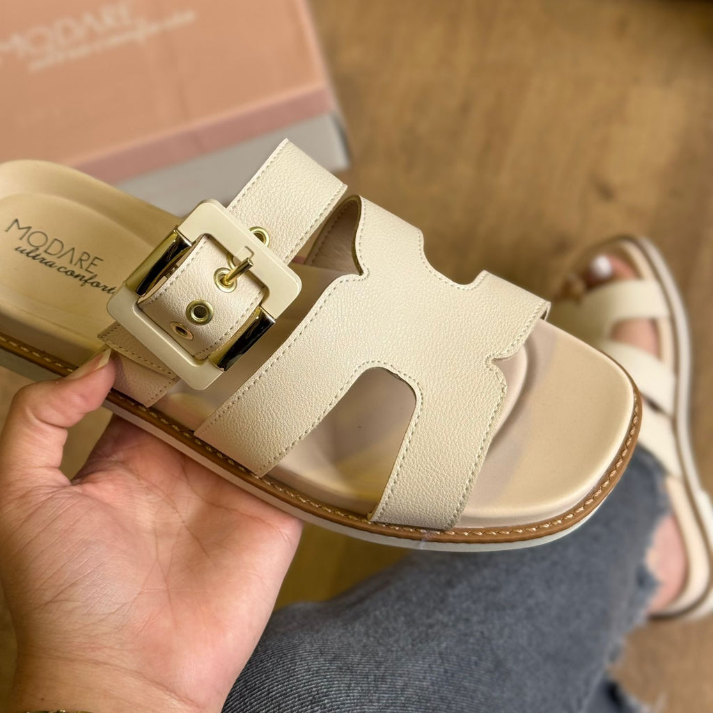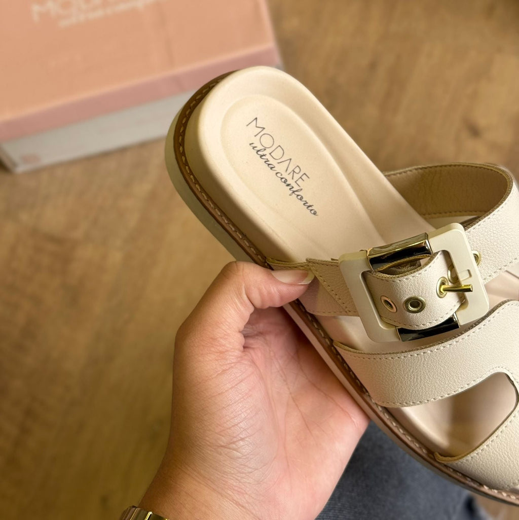 Sandália feminina Modare desenvolvida para oferecer o máximo de conforto no dia a dia. Conta com palmilha anatômica que proporciona absorção de impacto e bem-estar prolongado. O cabedal possui tiras largas com acabamento texturizado e fivela ajustável, garantindo um calce seguro e prático. A sola é emborrachada com leve plataforma, promovendo estabilidade ao caminhar. Ideal para compor looks casuais com leveza e estilo.