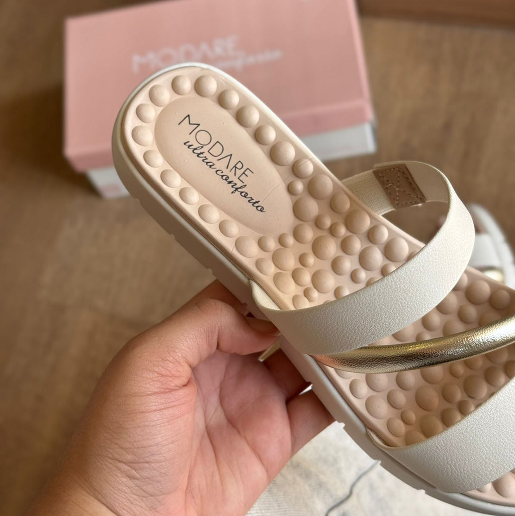 Sandália Modare com design minimalista e elegante, apresenta tiras finas que proporcionam conforto e leveza ao caminhar.