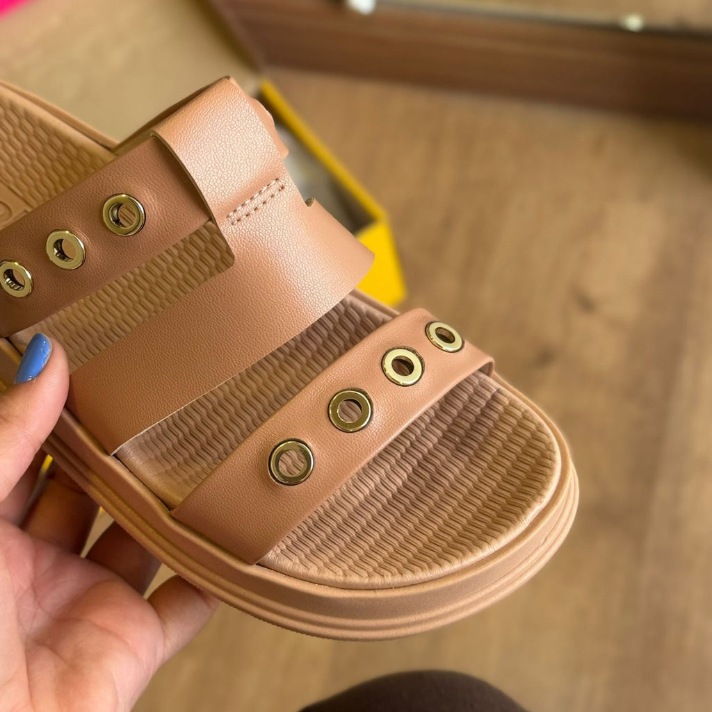 A Sandália Moleca Argolas 5556.103 combina estilo moderno e conforto para o dia a dia. Com tiras largas que proporcionam ajuste seguro, o modelo se destaca pelos detalhes em argolas metálicas aplicadas, que trazem um toque urbano e sofisticado ao visual.