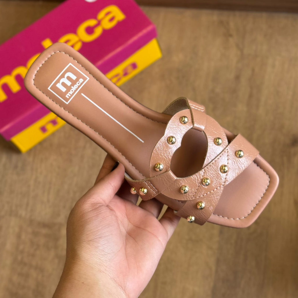 A Sandália Rasteira Moleca Coração 5462.145 combina design feminino com conforto para o uso diário.