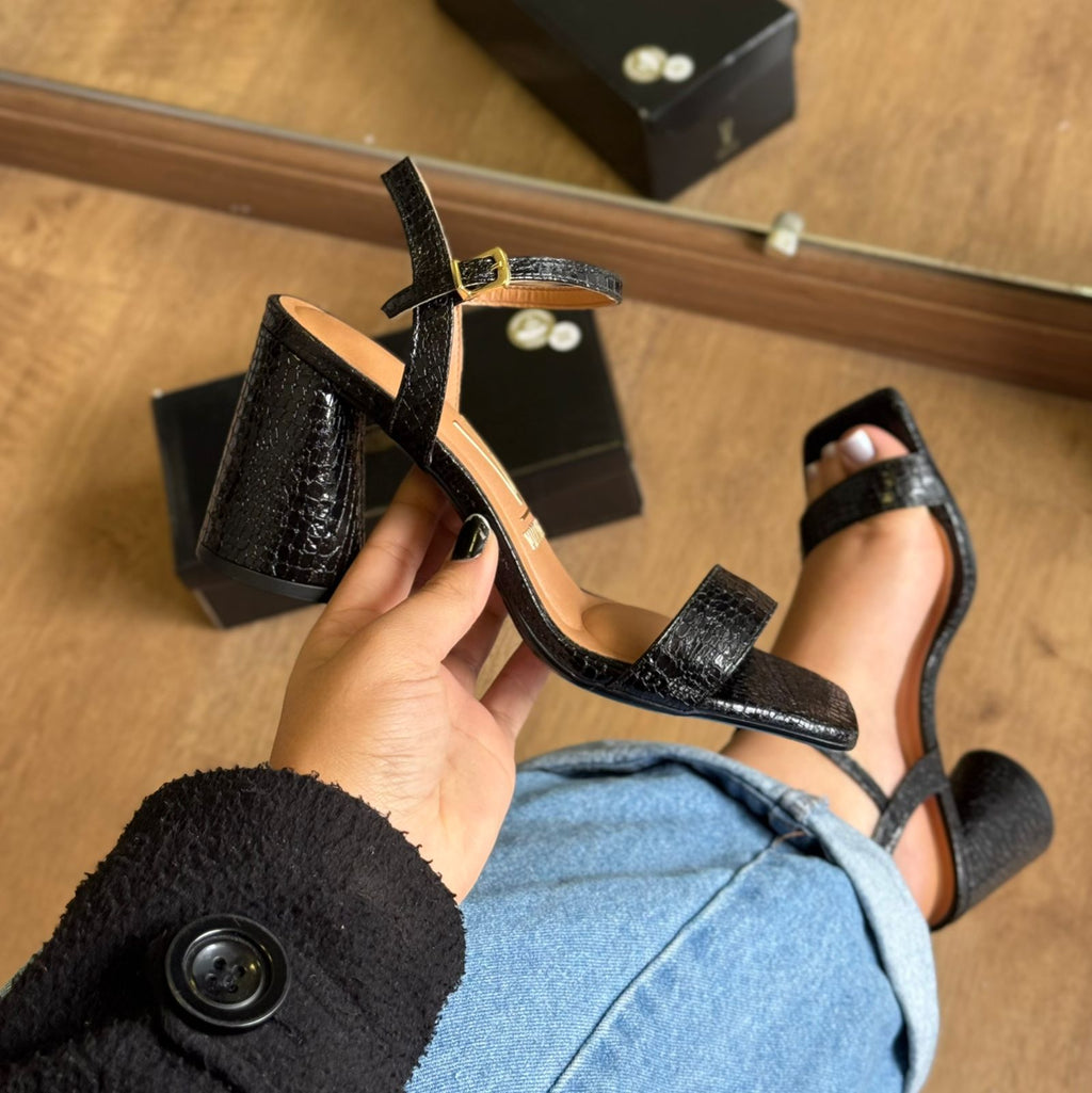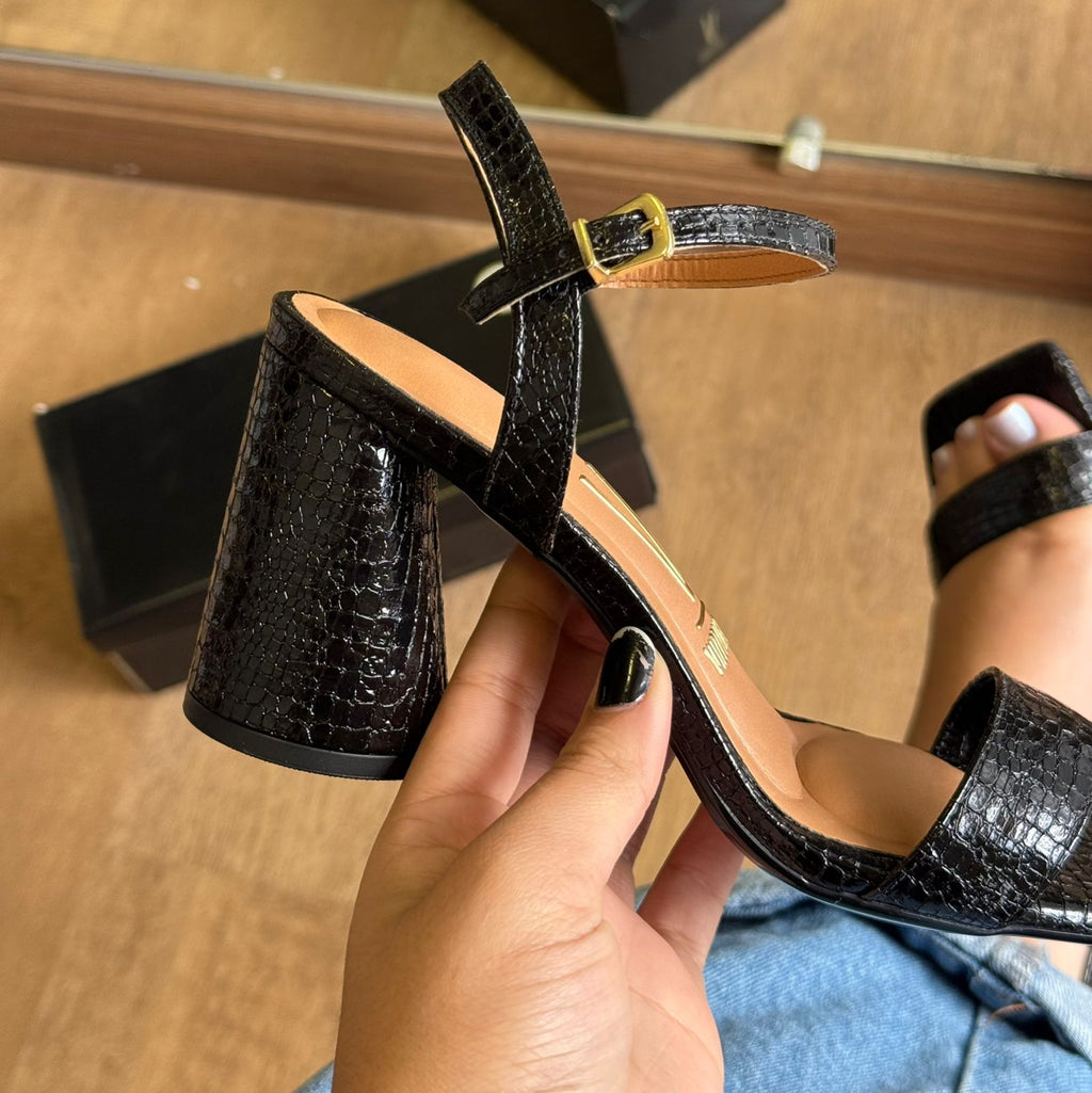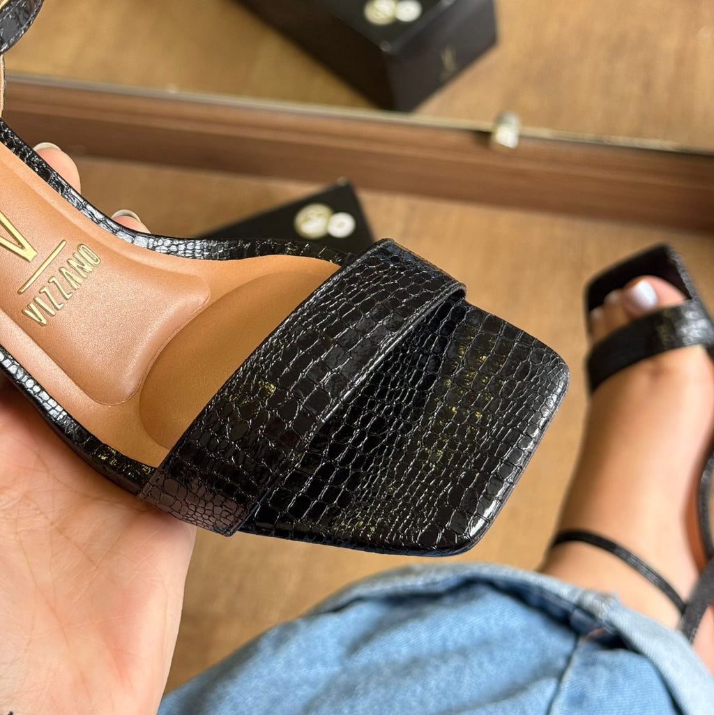 A Sandália Salto Vizzano Croco 6562.101 combina elegância e conforto com seu design sofisticado em verniz croco. O salto bloco oferece estabilidade para uso prolongado, ideal para quem busca estilo sem abrir mão da praticidade. Perfeita para compor looks formais ou casuais com um toque moderno e refinado.