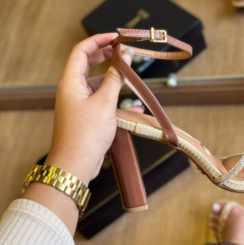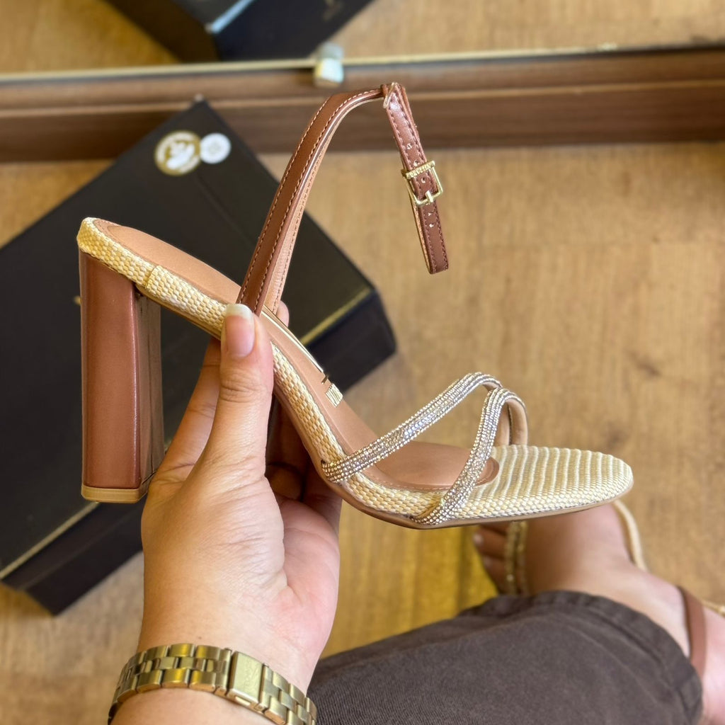 Sandália Vizzano Salto Bloco Tiras Finas Brilhosas 6550.203