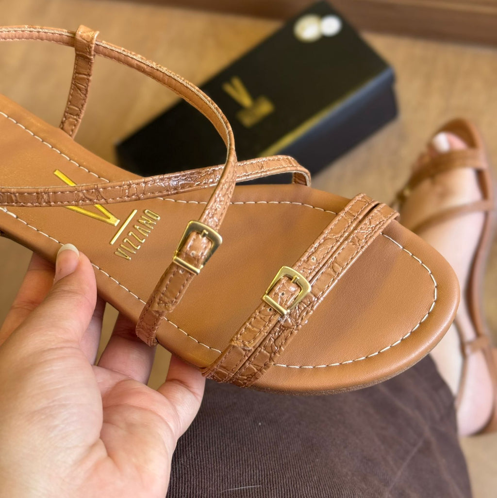 Sandália Vizzano com design minimalista e tiras finas que proporcionam elegância e leveza. Modelo combina conforto com estilo contemporâneo, ideal para o dia a dia ou ocasiões mais descontraídas.