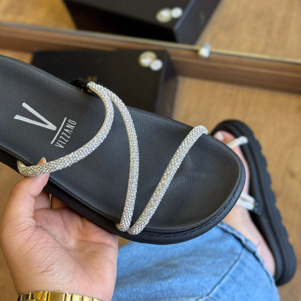 Sandália Vizzano Tiras Strass Prateado 6459.118